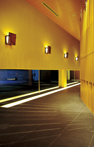 デザイン自体はすんなりといったのですが、やはりプライベート感の演出が大切だった。誰ともすれ違いたくないし、目を合わせたくないけれども、ホテルに泊まっていることは見せたいというか。ところがホテルとか旅館って、わりと公的な側面が大きいじゃないですか。その辺の葛藤をどう解消していくかが課題でしたね。だからロビーは『箱根・翠松園』の顔ではあるけれども、寛ぐ場所ではないんですよ。とりわけ、本館のエントランスから入ってくるエリアの土壁から、フットライトの光、足元に施した窓。その動線へのアプローチの仕方は、一番初めのプレゼンから貫き通したところなんです。目が合わないように格子を立てたり、窓を足元だけにしたり、コンシェルジュが座っていても見えないようになっているとか。それらを踏まえてレストラン「紅葉」で食事をしていただければ、苦労したのが分かってもらえるかなと(笑)。